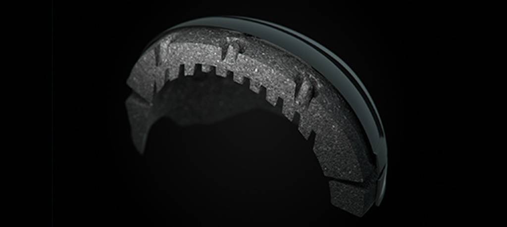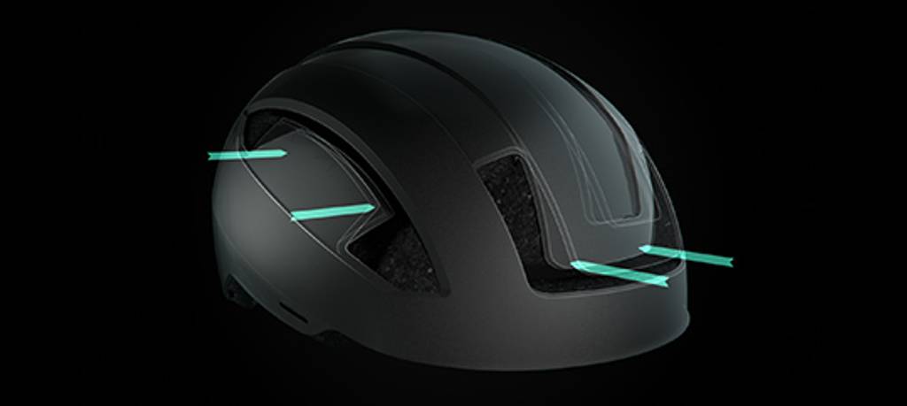 The front vent and lateral wings of the outer shell are designed to flex and improve protection from rotational and direct impact.